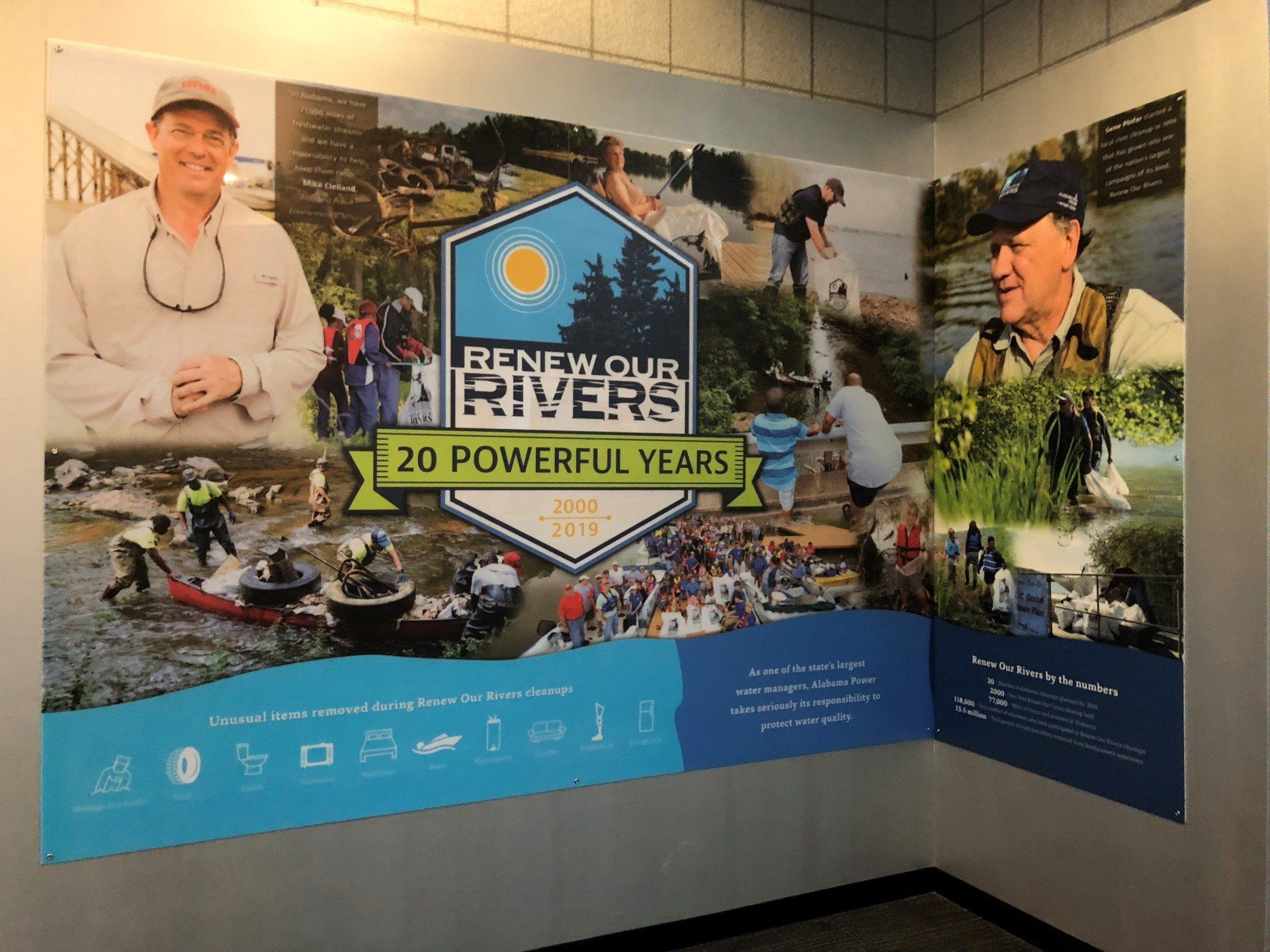 Project for Renew Our Rivers. Front surface printed on rigid white polycarbonate. Large section is 8’ x 10’. Small section is 8’ x 4’