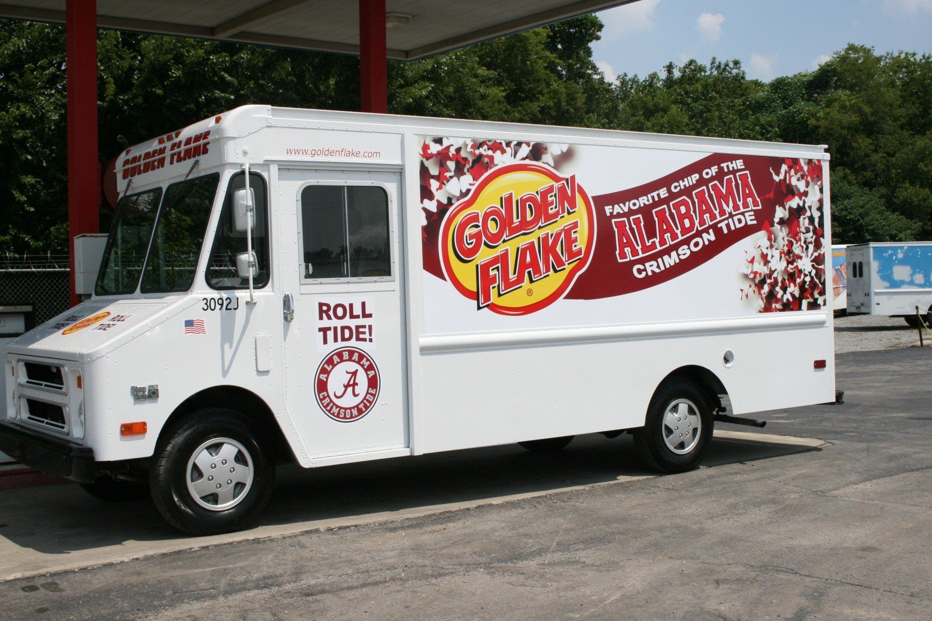 Golden Flake Snack Foods. Alabama Crimson Tide route truck wrap.